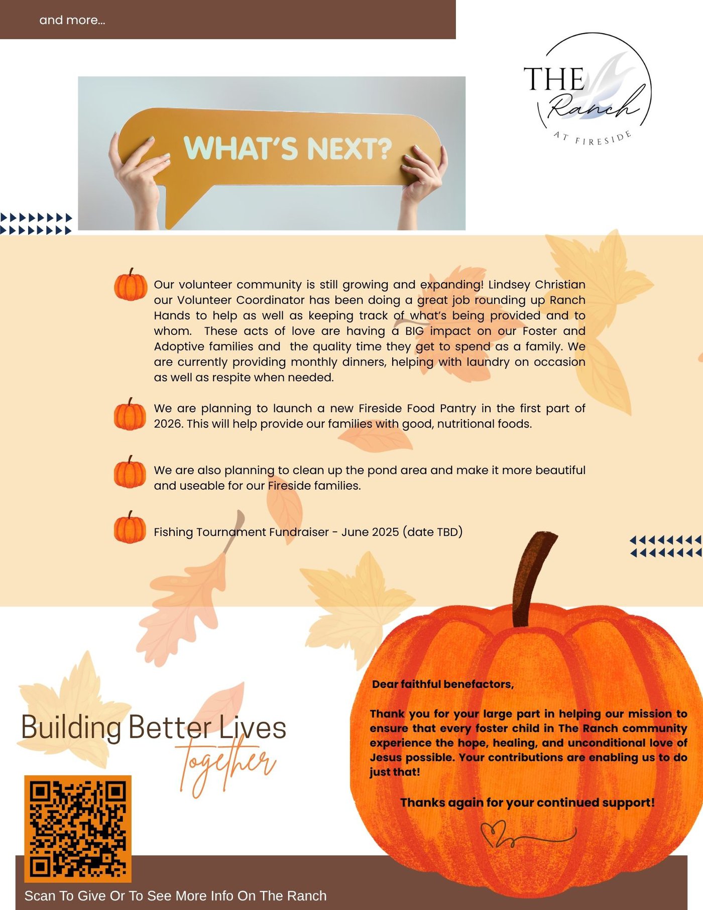 - As of October 2023, The Ranch has served 13 children. Fostering 8 and providing respite care for 5.